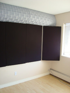 Small rooms are more likely to have acoustic problems than larger ones, primarily flutter echo, room modes and early reflections that are too short. In my room, I knew there was a very bad flutter echo problem and room modes may be a problem but were predictable. The room is symmetrical which was an advantage the old room didn’t have. The measurements are approximately 11ft long x 9ft wide x 8ft tall. There is a door and a closet on the back wall and 6 x 4 window on the front wall.