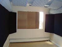 In the middle of the front wall of this new room I had a roughly 6 ‘x 4’ single-paned window. Two problems with this: reflects sound within the room, leaks sound in and out.